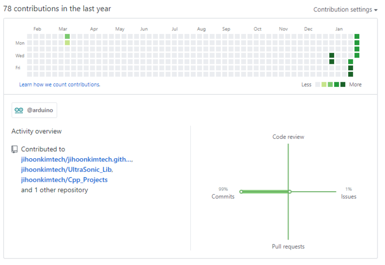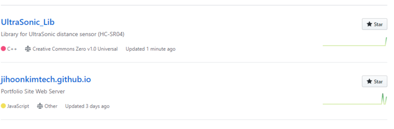 그동안 커밋을 진행했던 Repository는 초음파센서 라이브러리와 개인 포트폴리오 사이트였습니다.